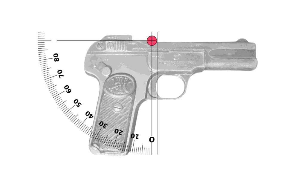 Kurzfassung. Dieser Fachartikel untersucht die konstruktiven Entscheidungen John Brownings im Hinblick auf die Geometrie zwischen Lauf (Bore axis) und Griffstück bei frühen Selbstladepistolen und vergleicht vier Schlüsselmodelle: FN 1900, Colt 1903 „Pocket Hammerless“, Colt 1911 und (als späteren Entwicklungsstrang) die FN High Power (Hi-Power). Schwerpunkt ist die Ausprägung des Griff-/Laufwinkels, die Folgewirkungen auf Rückstoßführung, Mündungsflip und Zielbild.